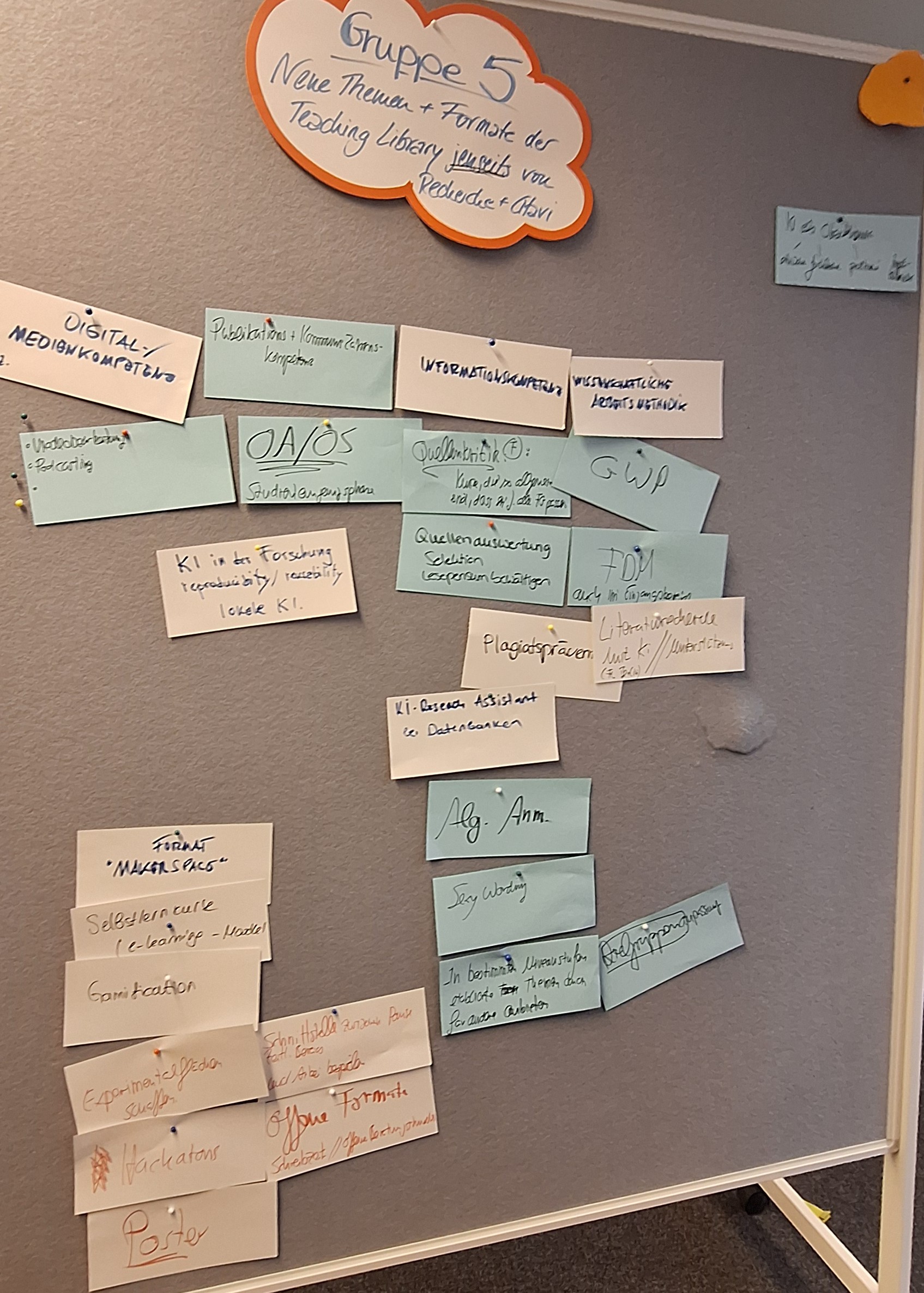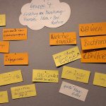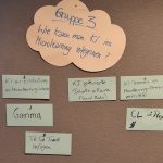 Zum Abschluss des Roundtables fand ein World Café statt, bei dem Themen aus dem Plenum in Kleingruppen bearbeitet wurden. Eine von mir moderierte Gruppe beschäftigte sich mit neuen Themen und Formaten in der Informationskompetenz.